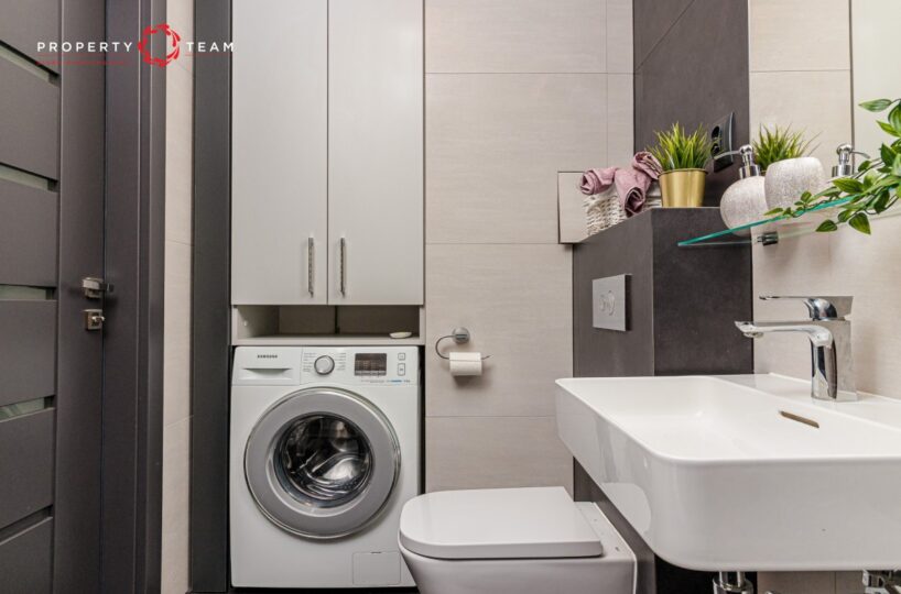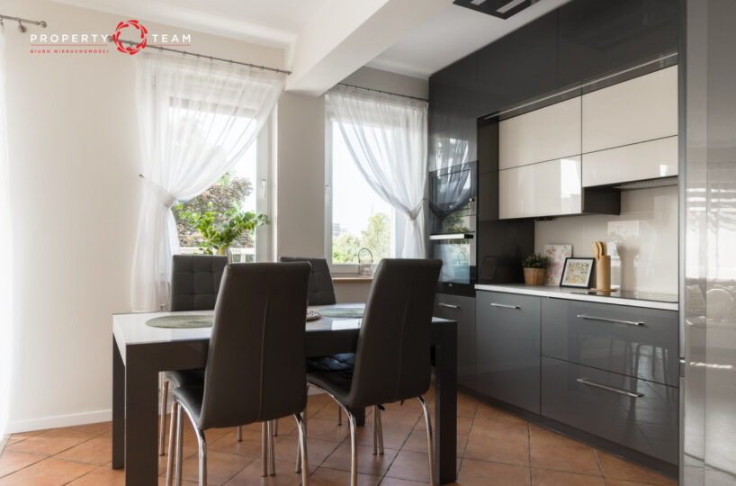 Kuchnia w wysokim standardzie, wyposażona w lodówkę (nowa), zmywarkę, piekarnik, kuchenkę mikrofalową oraz płytę indukcyjną.